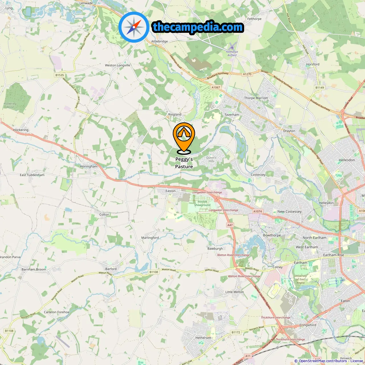Campeggi in Frettenham (13.89 mi da Queen'S Hills)