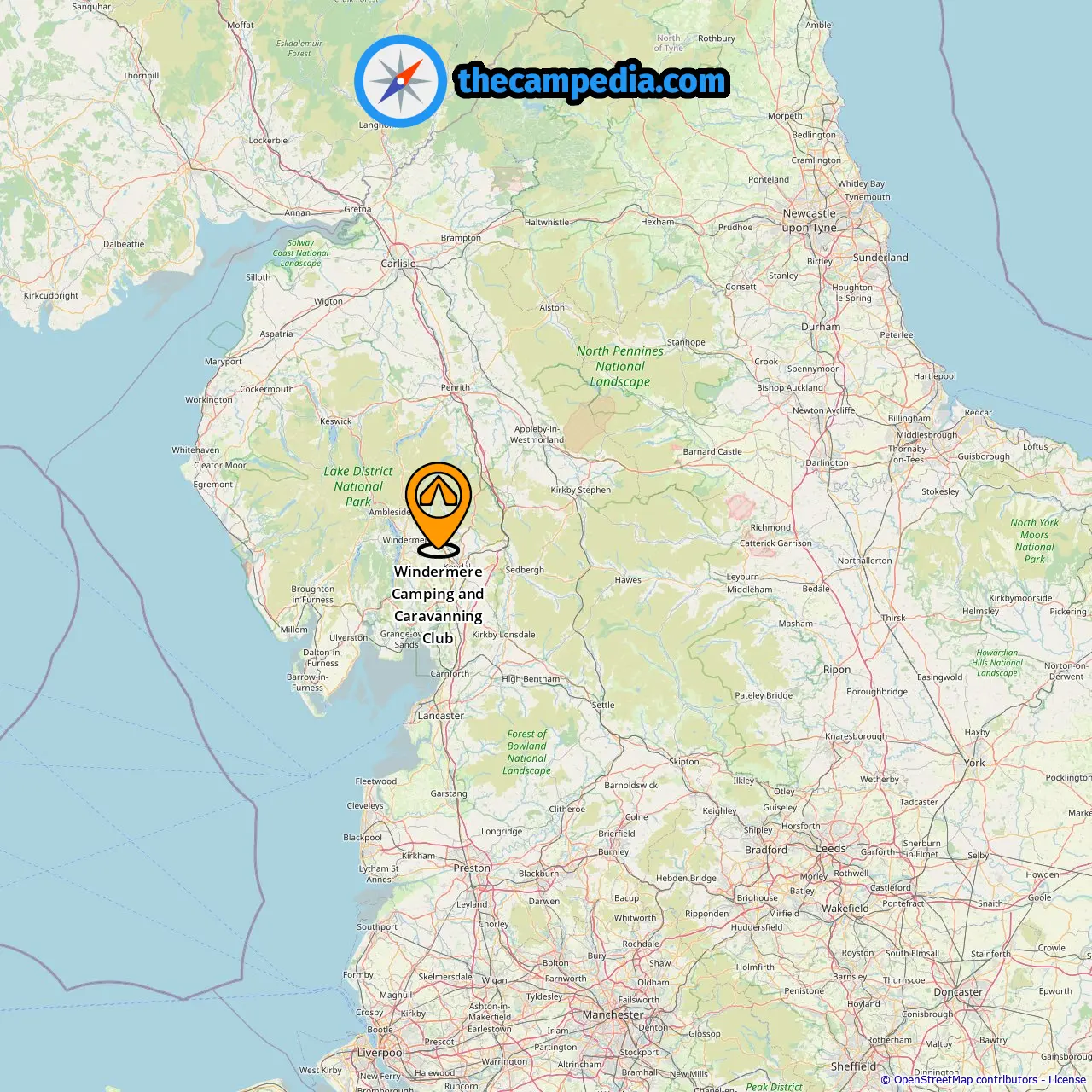 Posizione di Windermere Camping and Caravanning Club
