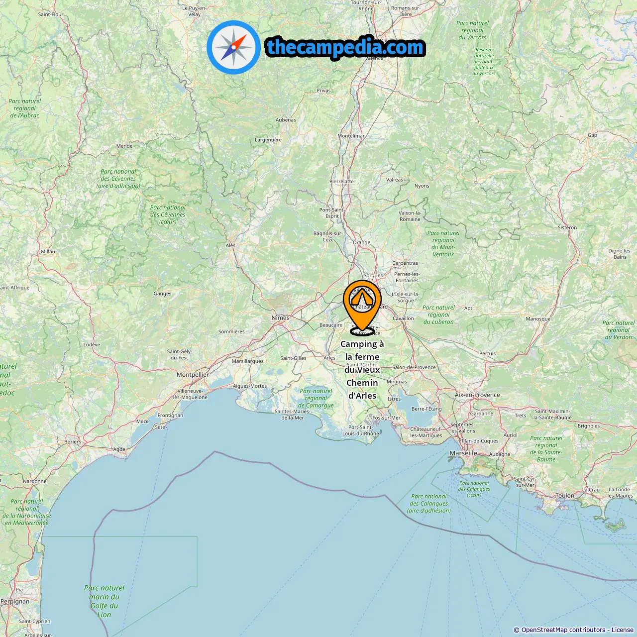 Locatie van Camping à la ferme du Vieux Chemin d'Arles