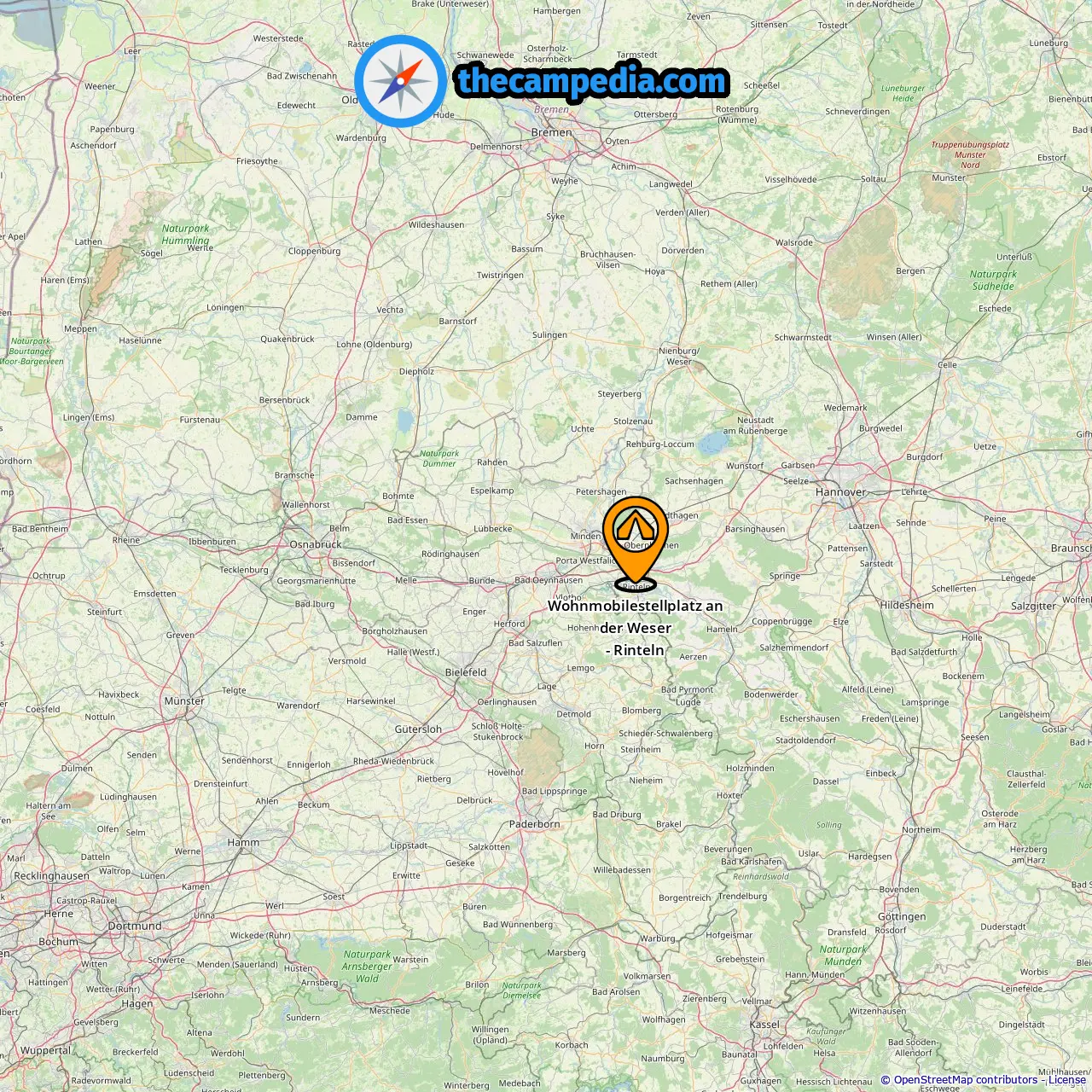 Locatie van Wohnmobilestellplatz an der Weser - Rinteln