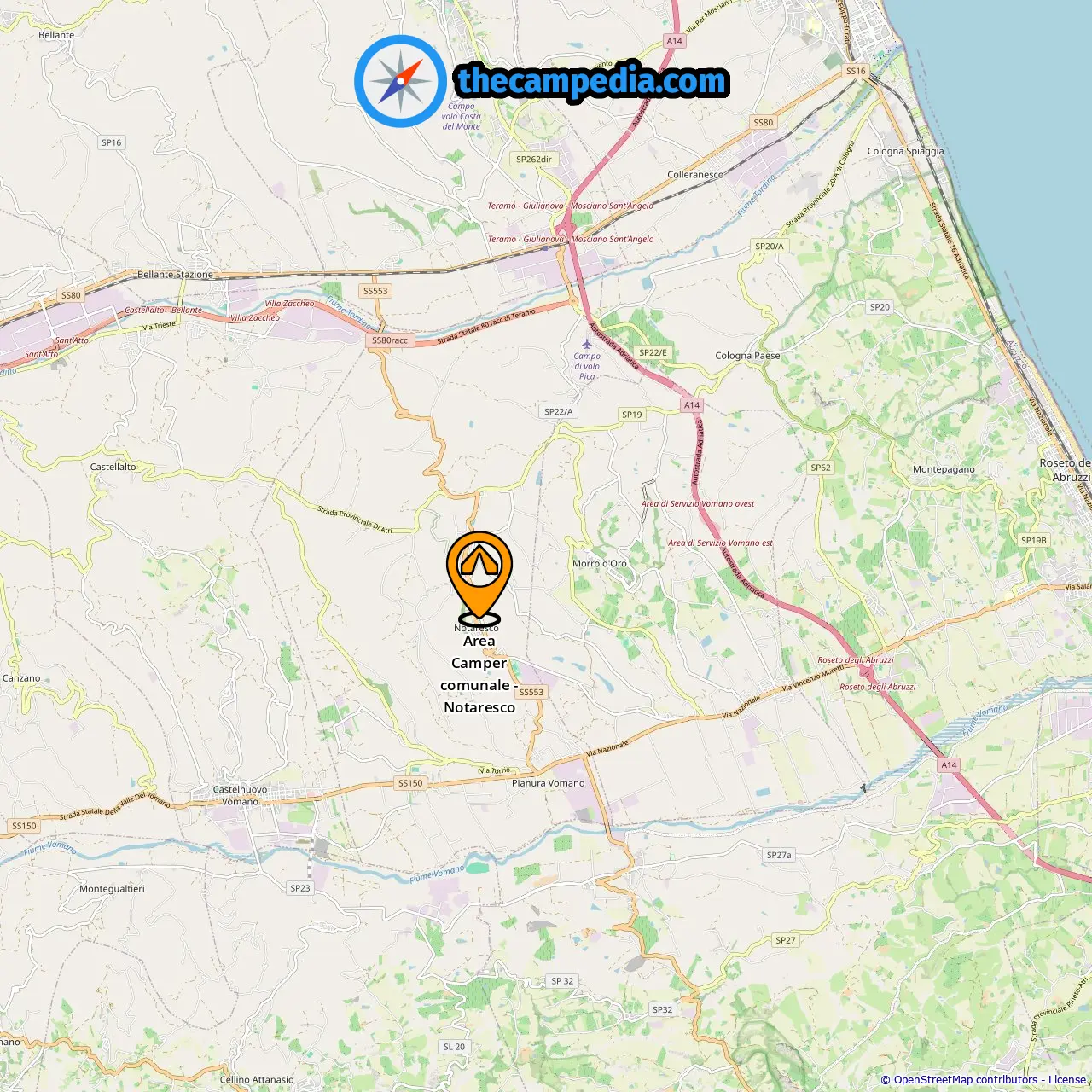 Locatie van Area Camper comunale - Notaresco