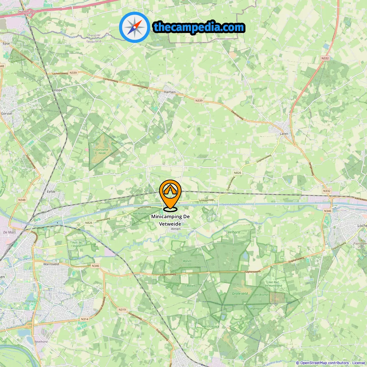 Campings in Veldwijk (3.41 mi vanaf Almen)