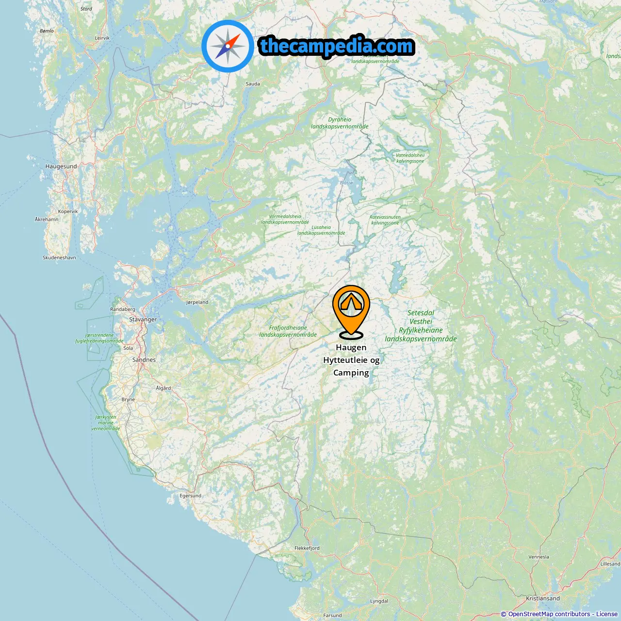 Campings in Håland (35.59 mi vanaf Haugen)