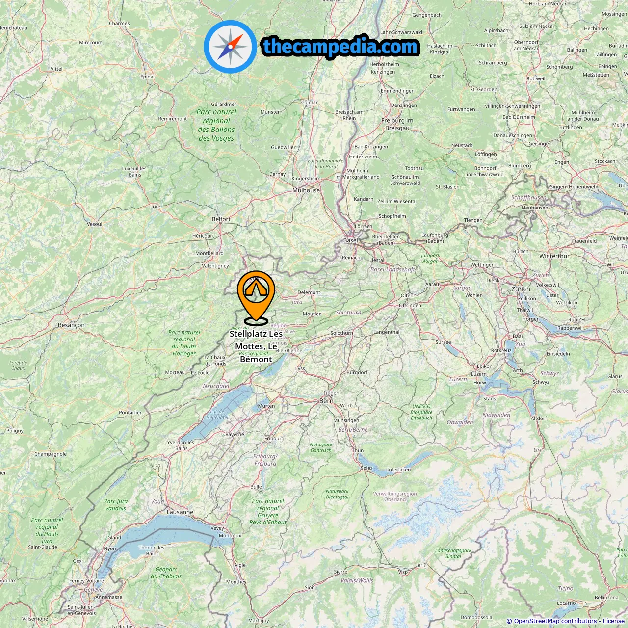 Locatie van Stellplatz Les Mottes, Le Bémont