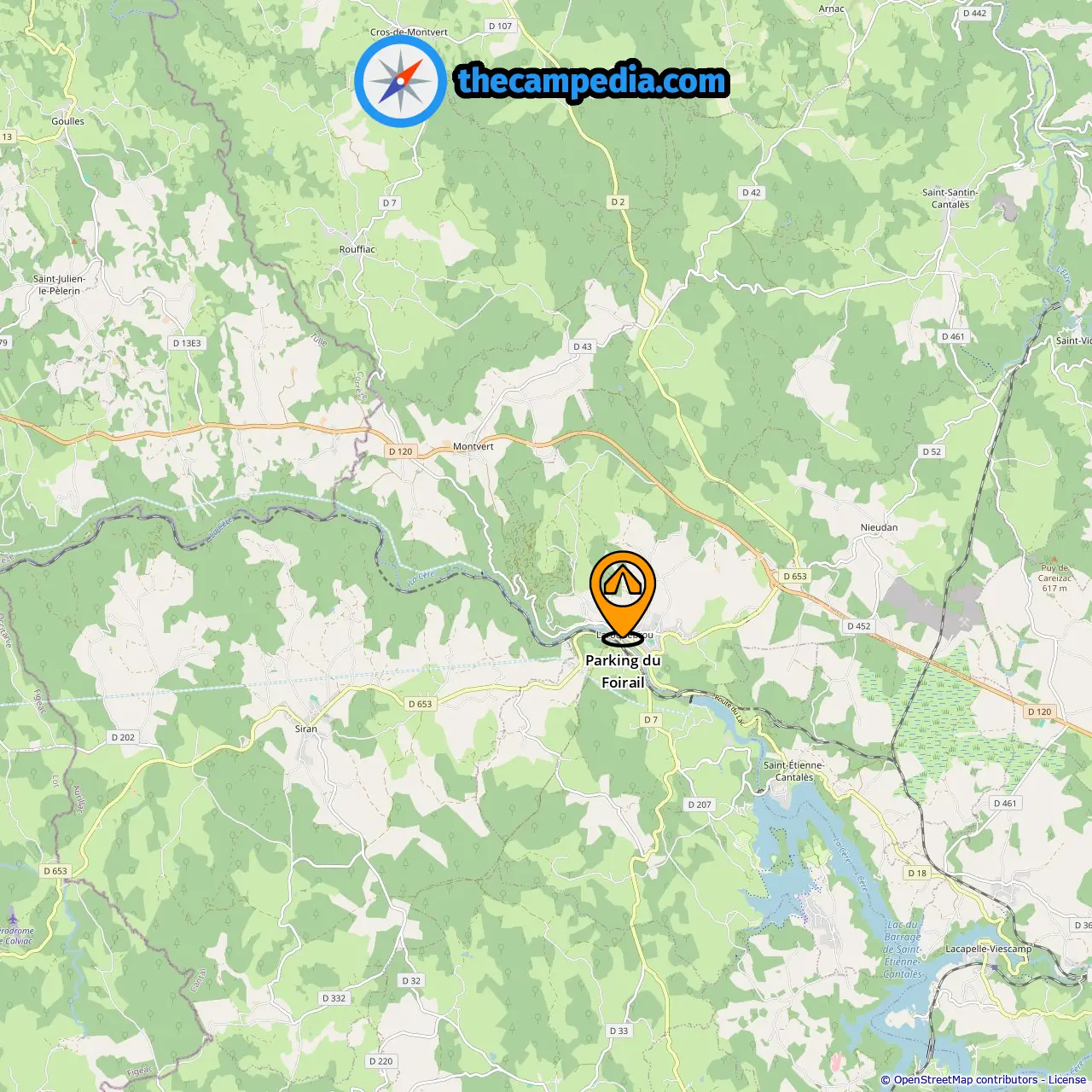 Odległość od pola kempingowego do Laroquebrou: 0.28 mi