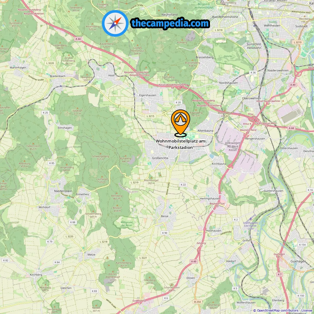 Lokalizacja Wohnmobilstellplatz am Parkstadion