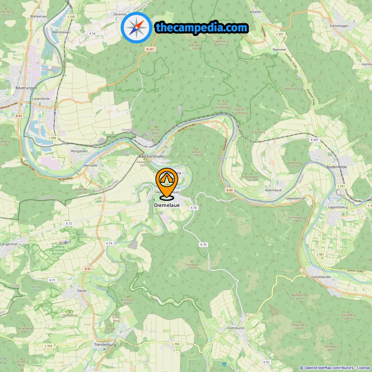 Znajdź pola kempingowe w tych miastach niedaleko Bad Karlshafen