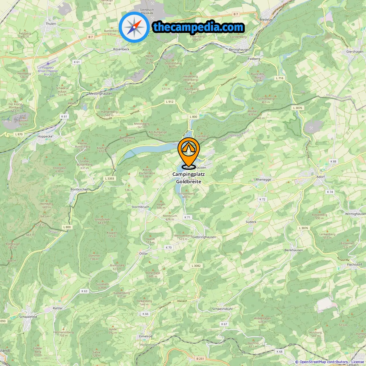 Odległość od pola kempingowego do Heringhausen: 0.44 mi