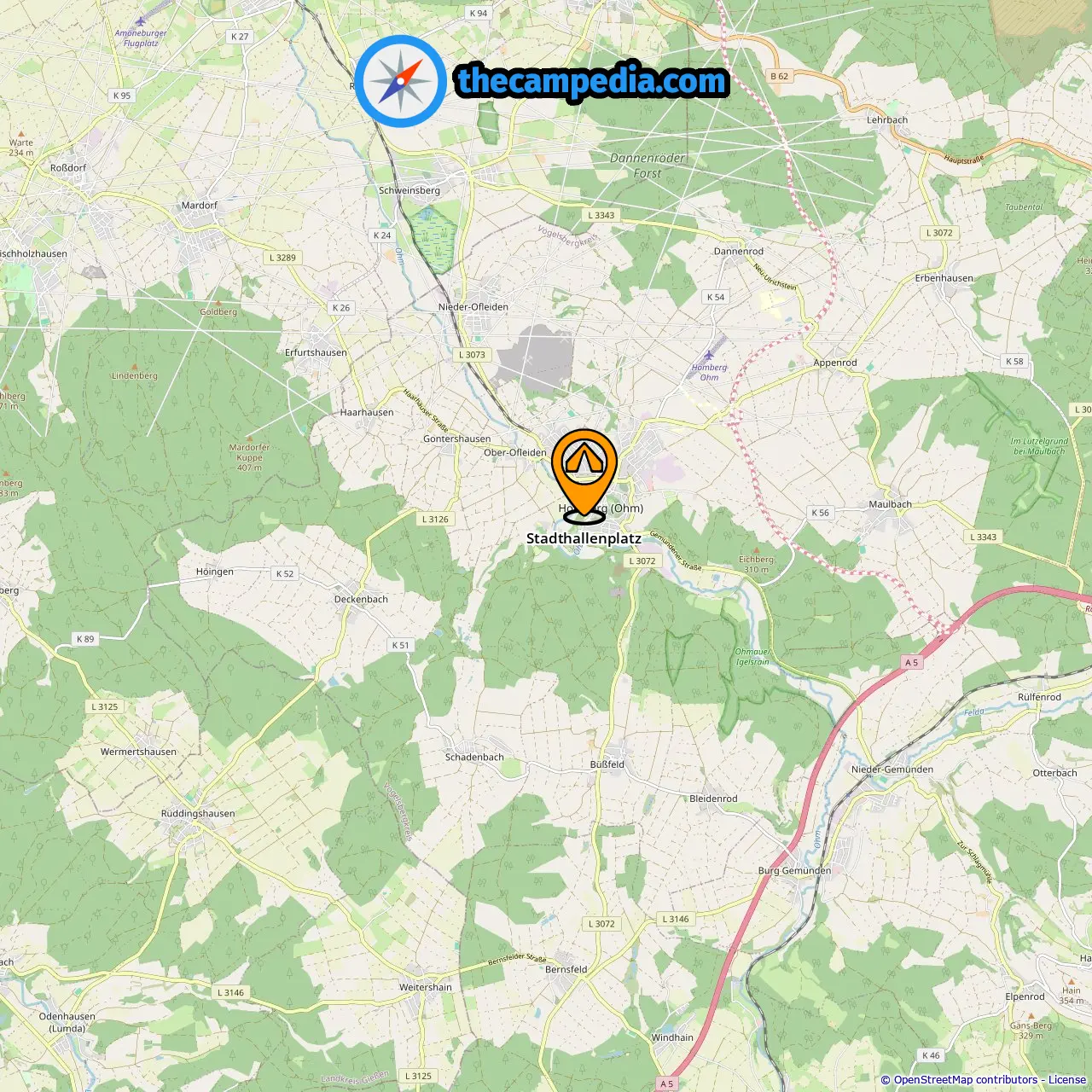 Odległość od pola kempingowego do Homberg (Ohm): 0.68 mi