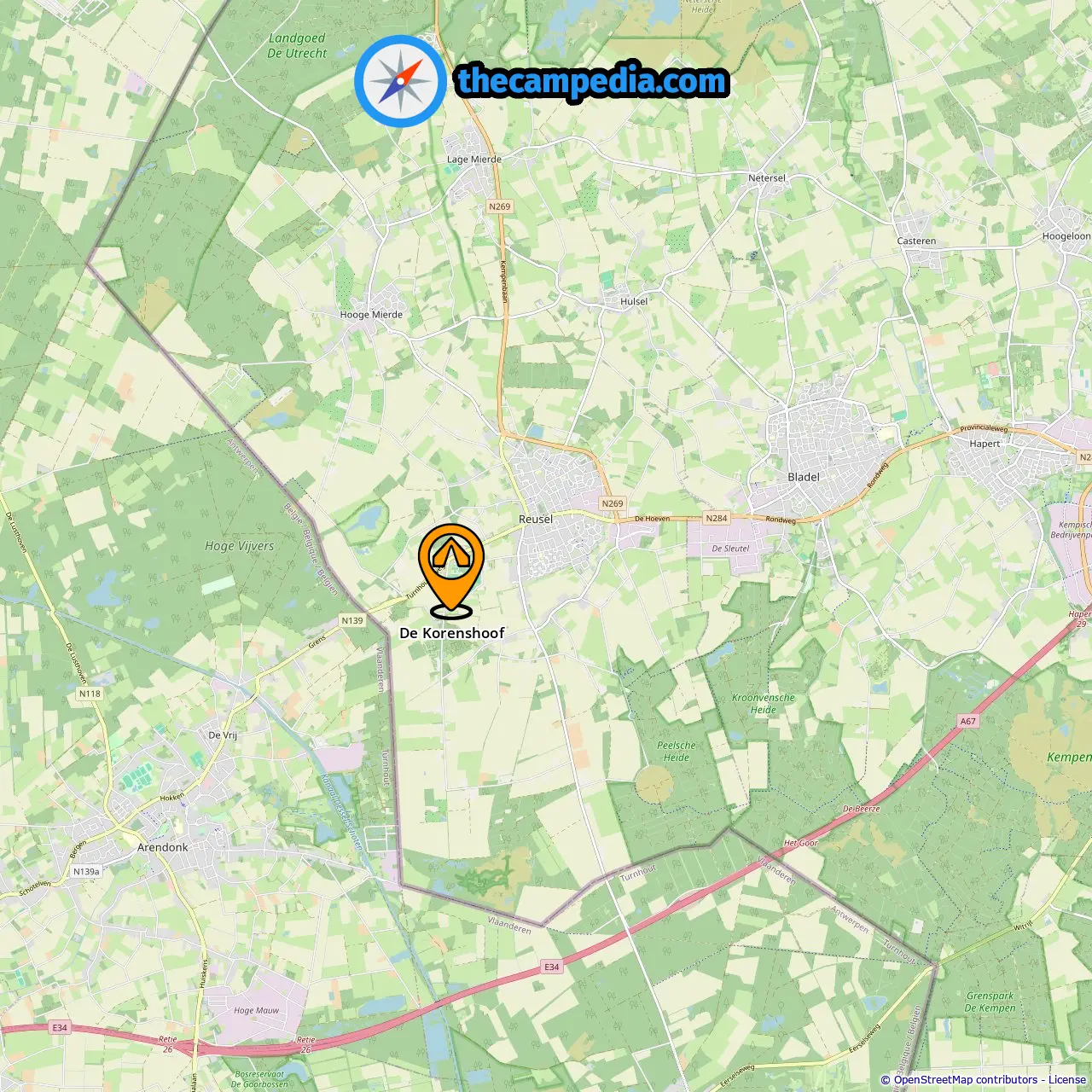 Odległość od pola kempingowego do Achterste Heikant: 0.16 mi