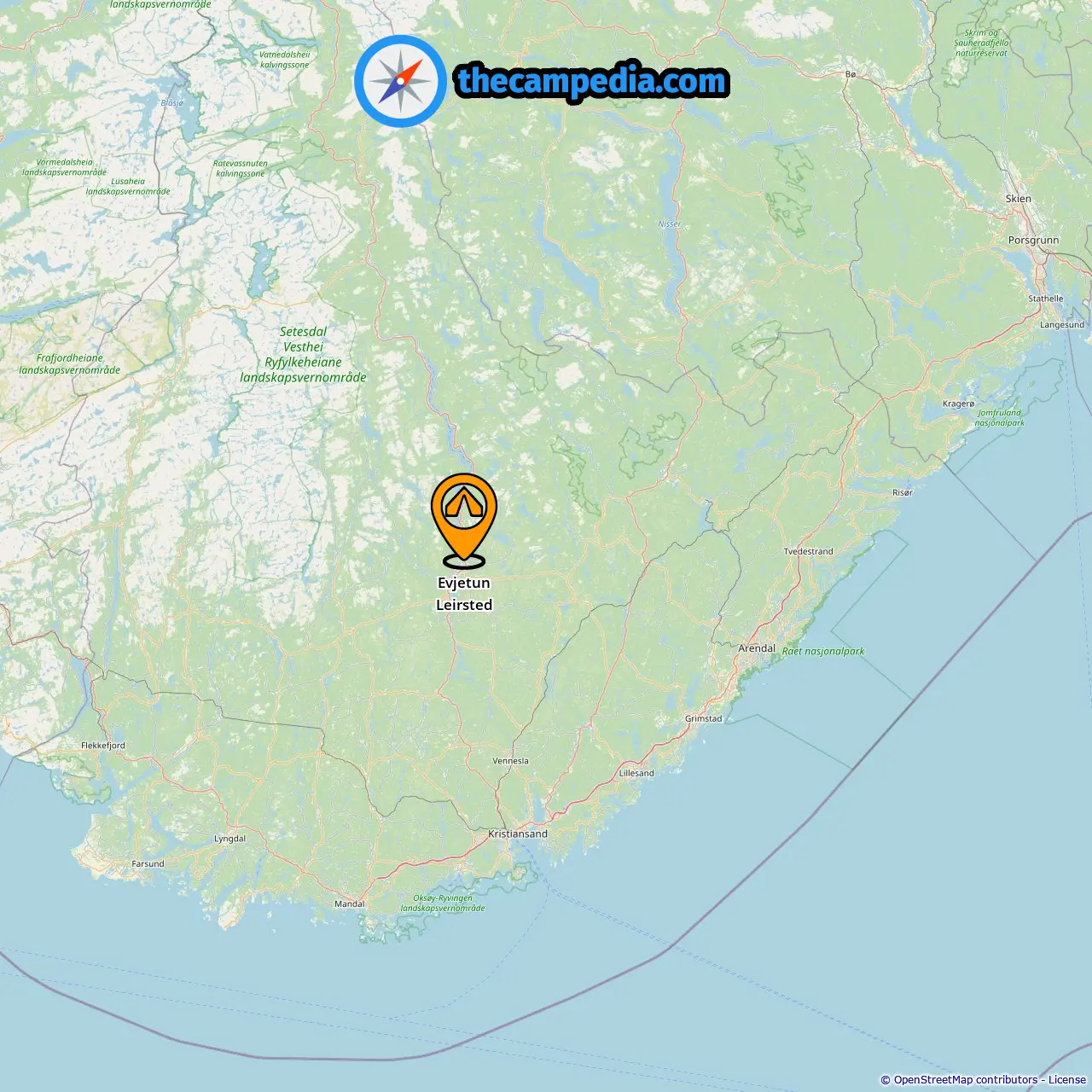 Lokalizacja Evjetun Leirsted