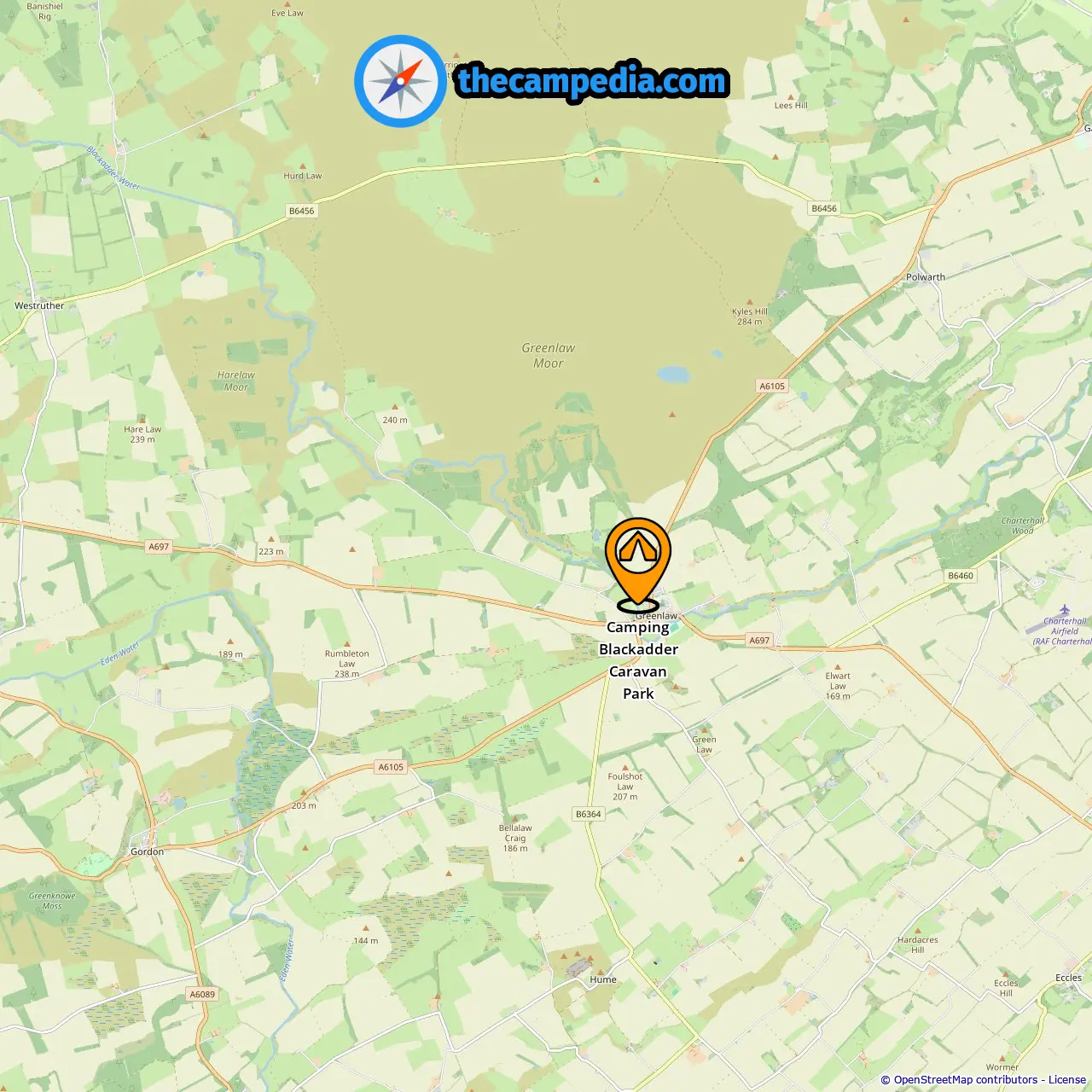 Odległość od pola kempingowego do Greenlaw: 0.2 mi