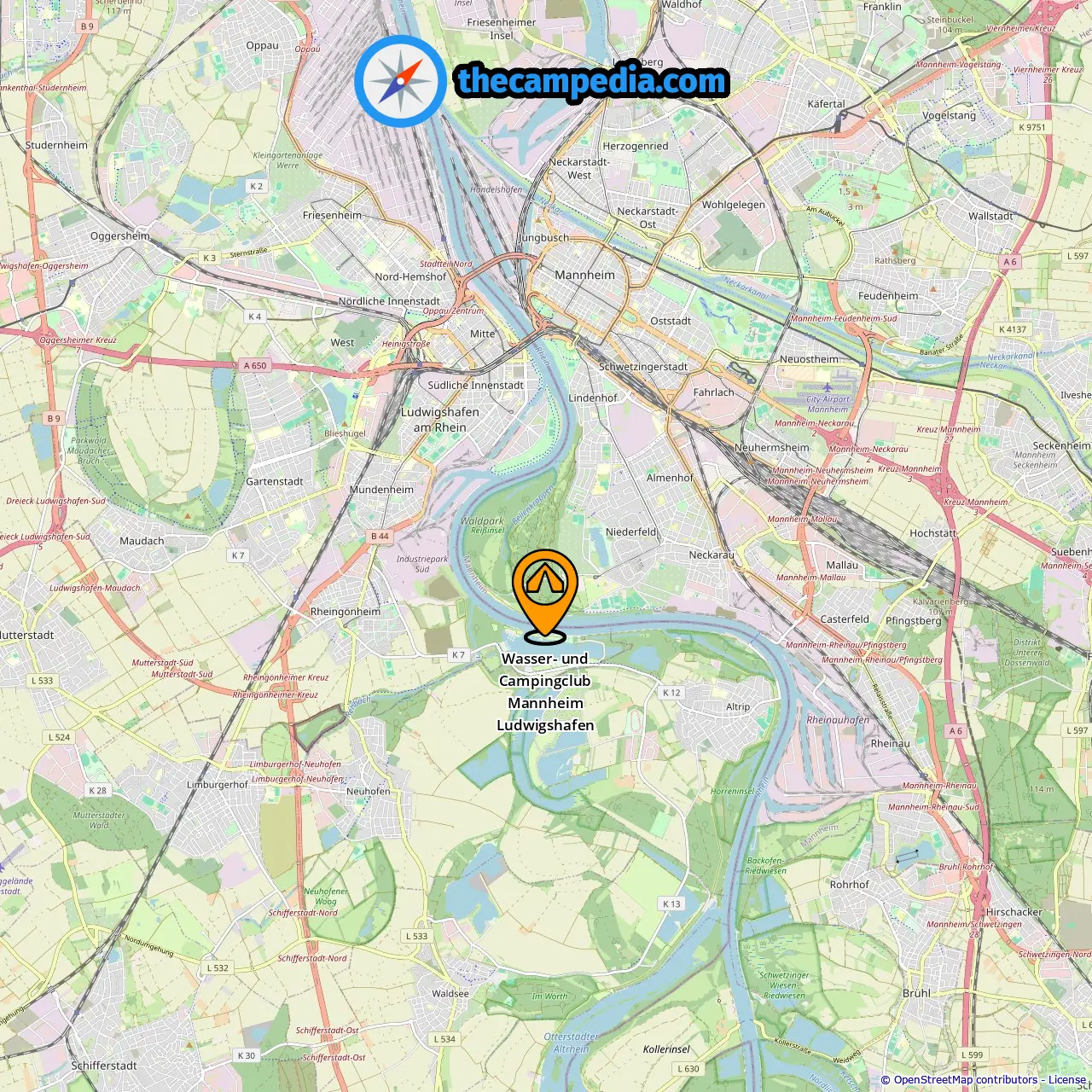 Localização de Wasser- und Campingclub Mannheim Ludwigshafen