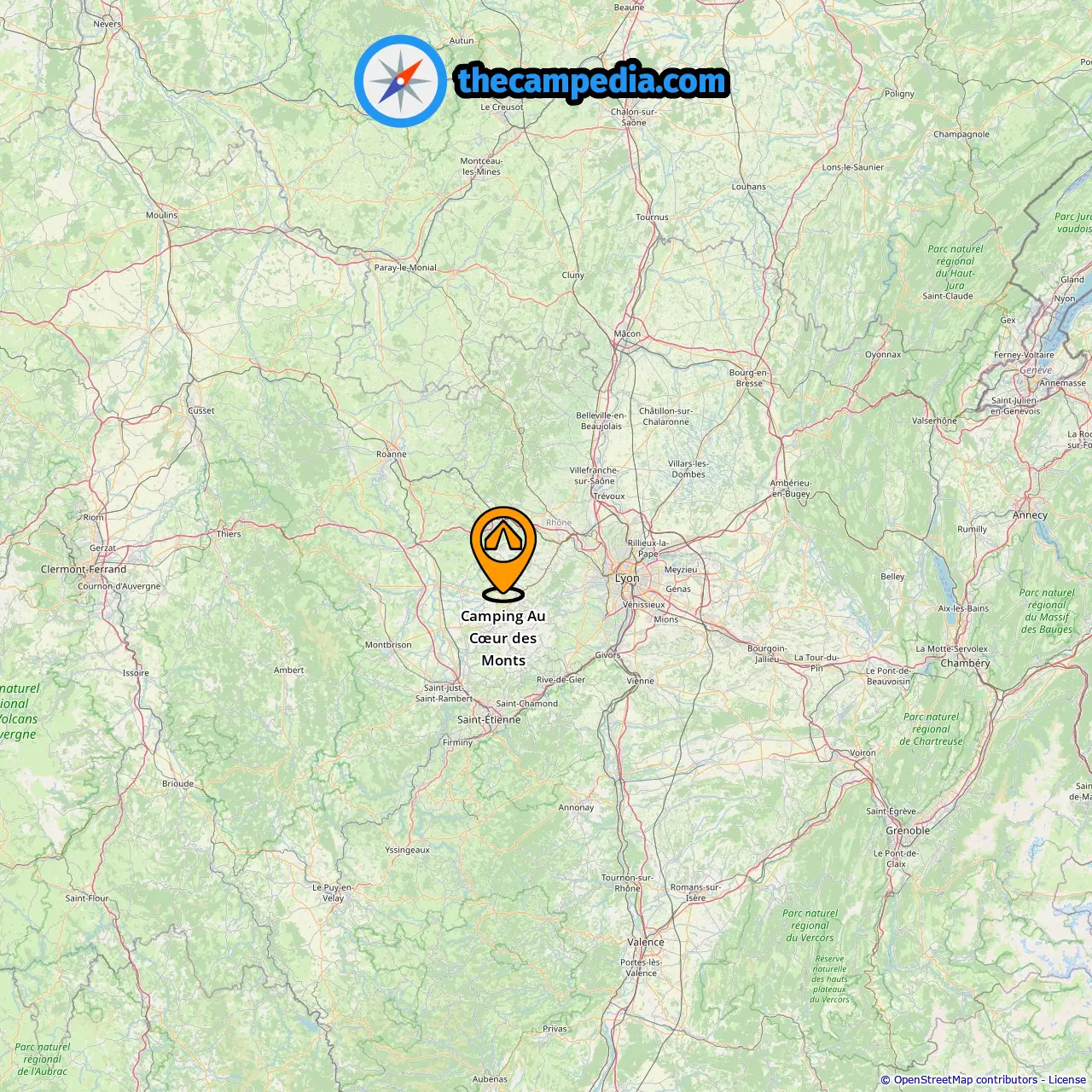 Acampamentos em Saint-Galmier (16.09 mi de Les Halles)