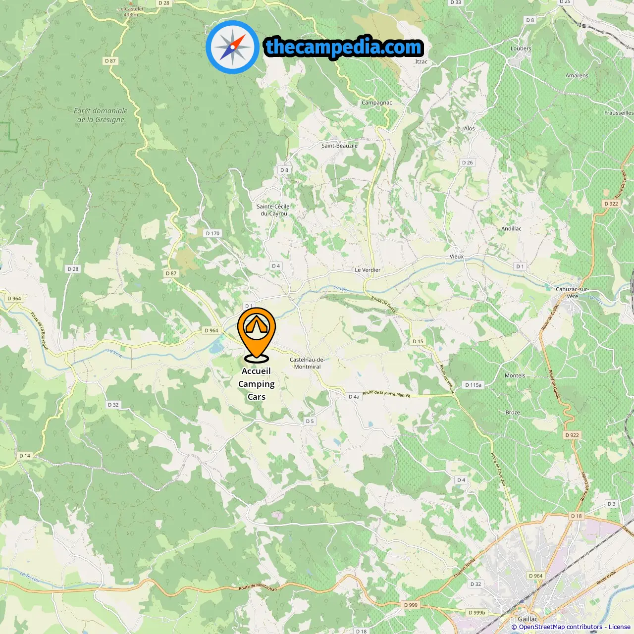 Distância do camping para Castelnau-De-Montmiral: 1.99 mi