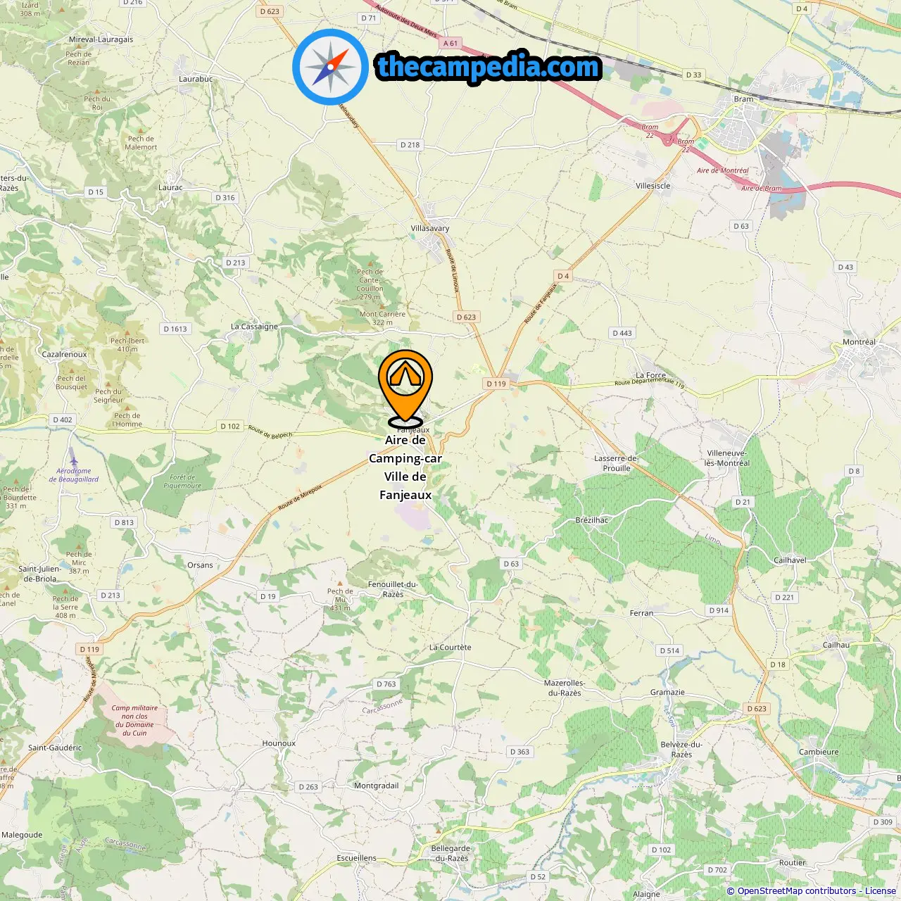 Localização de Aire de Camping-car Ville de Fanjeaux