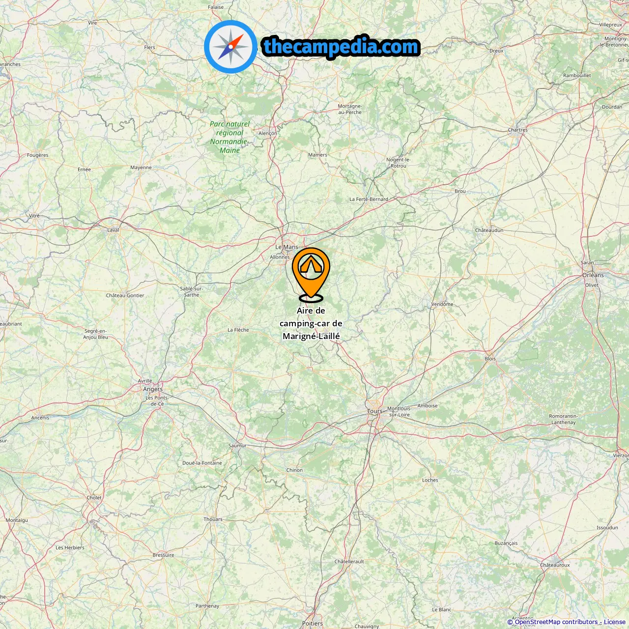 Localização de Aire de camping-car de Marigné-Laillé