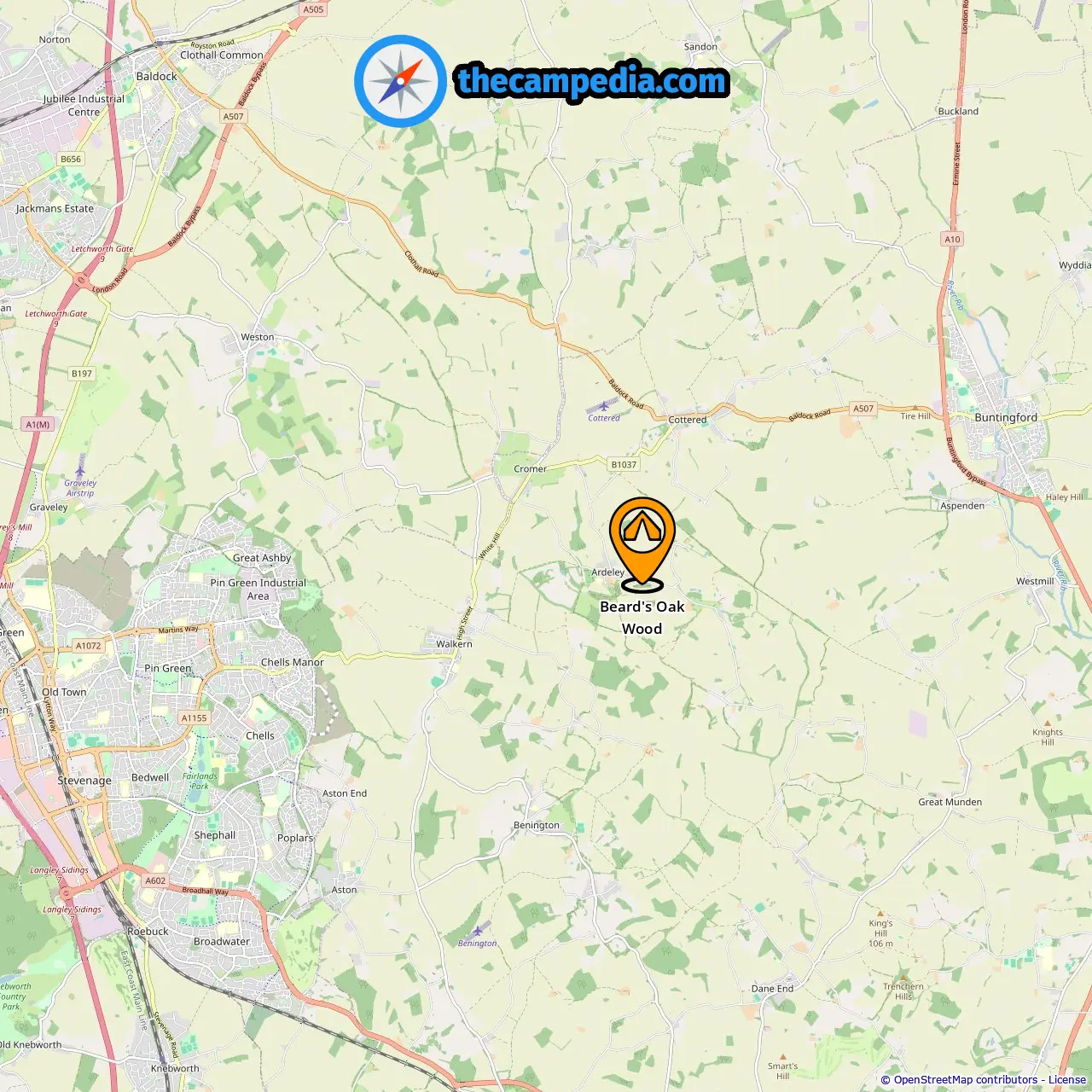 Distância do camping para Ardeley: 0.37 mi