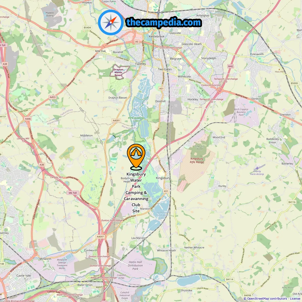 Localização de Kingsbury Water Park Camping & Caravanning Club Site
