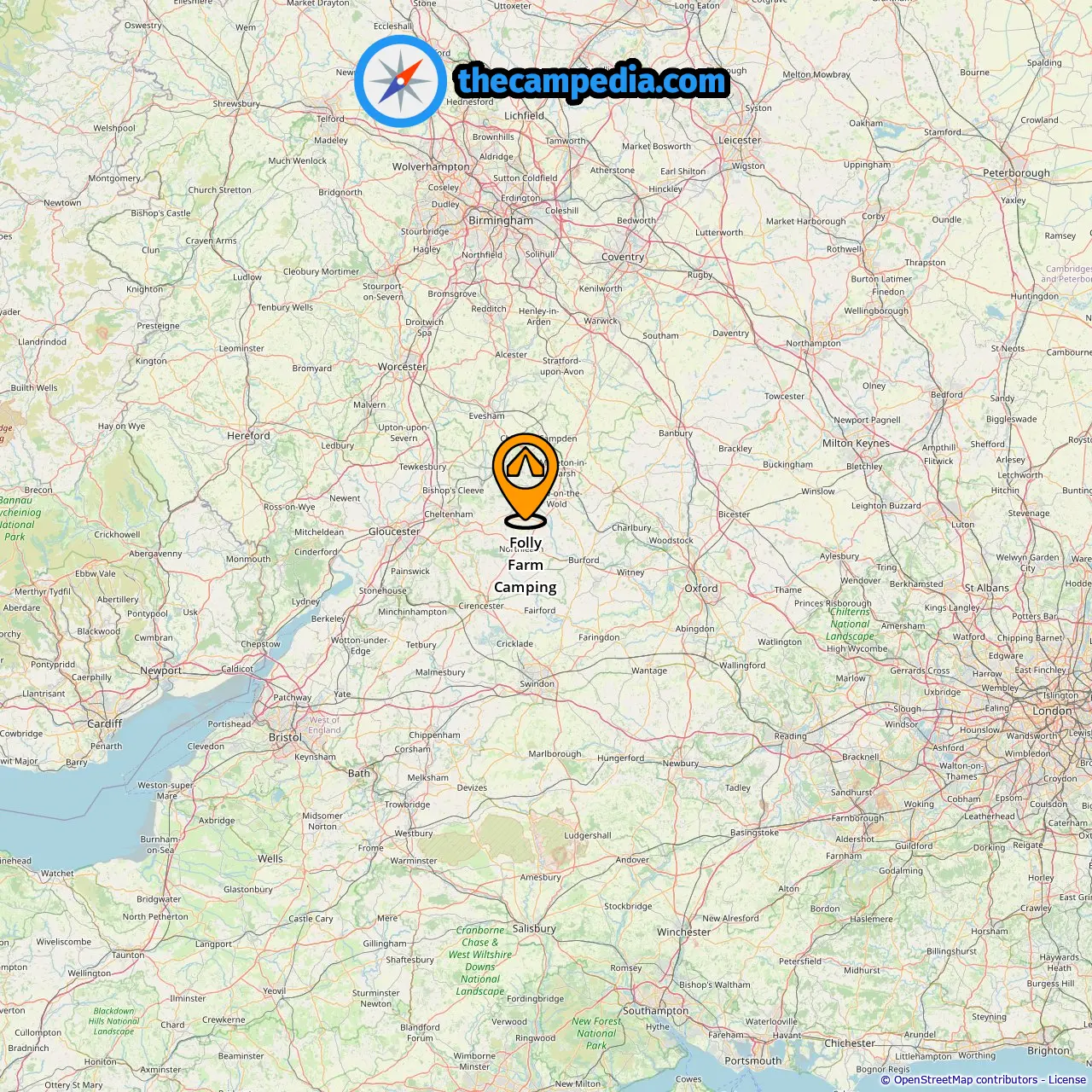 Acampamentos em Cheltenham (14.02 mi de Cold Aston)