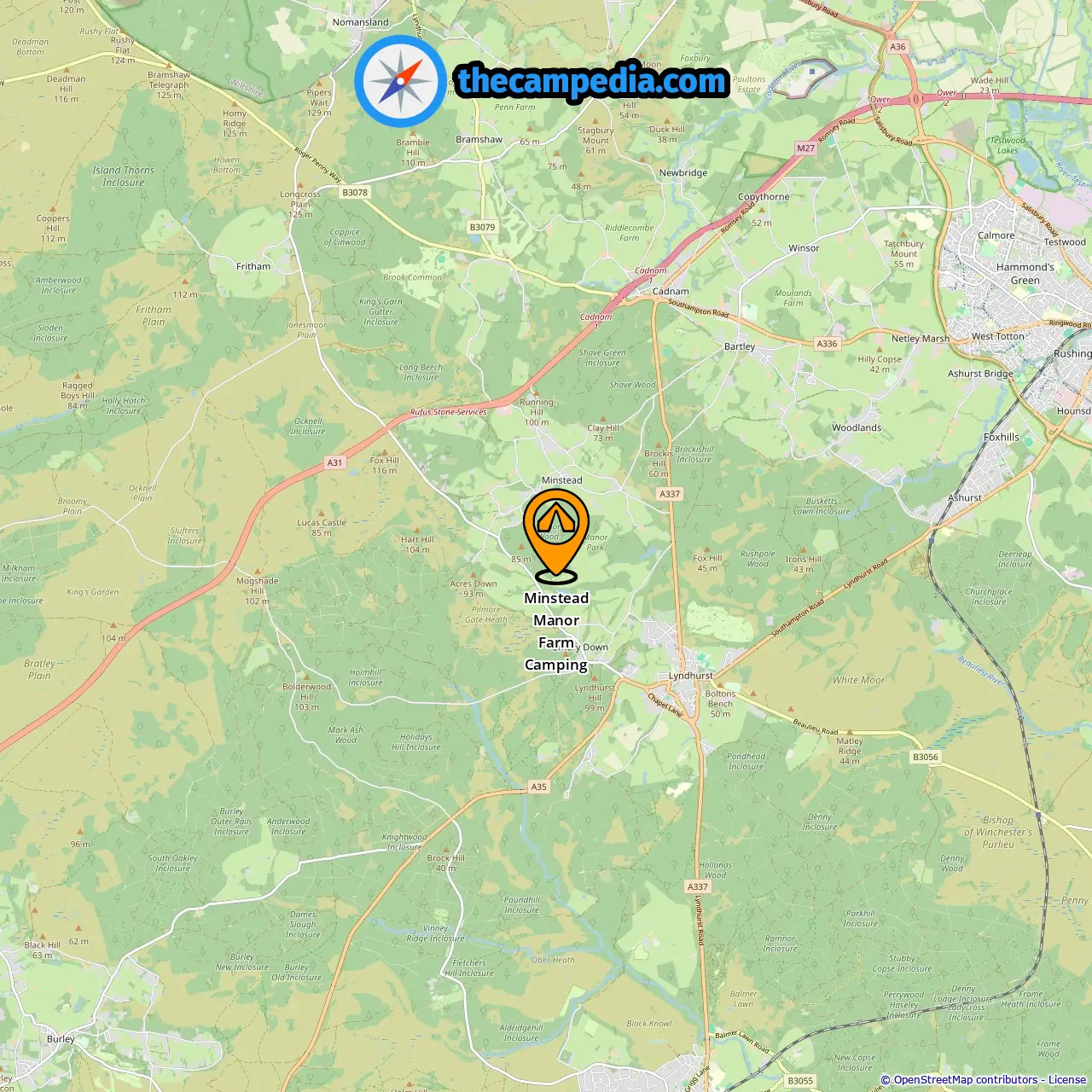 Localização de Minstead Manor Farm Camping
