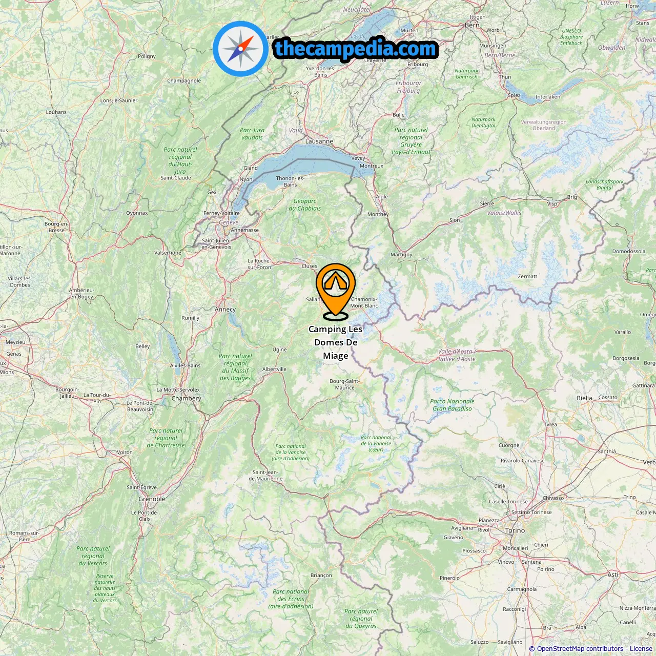 Localização de Camping Les Domes De Miage