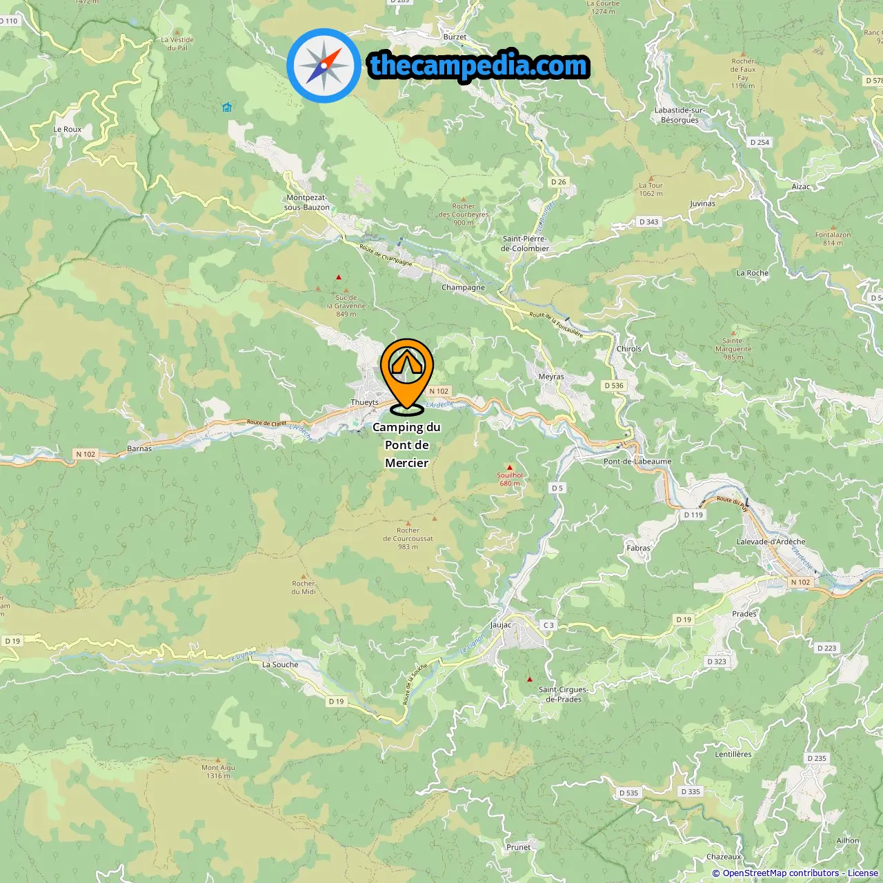 Acampamentos em Aizac (14.37 mi de Thueyts)