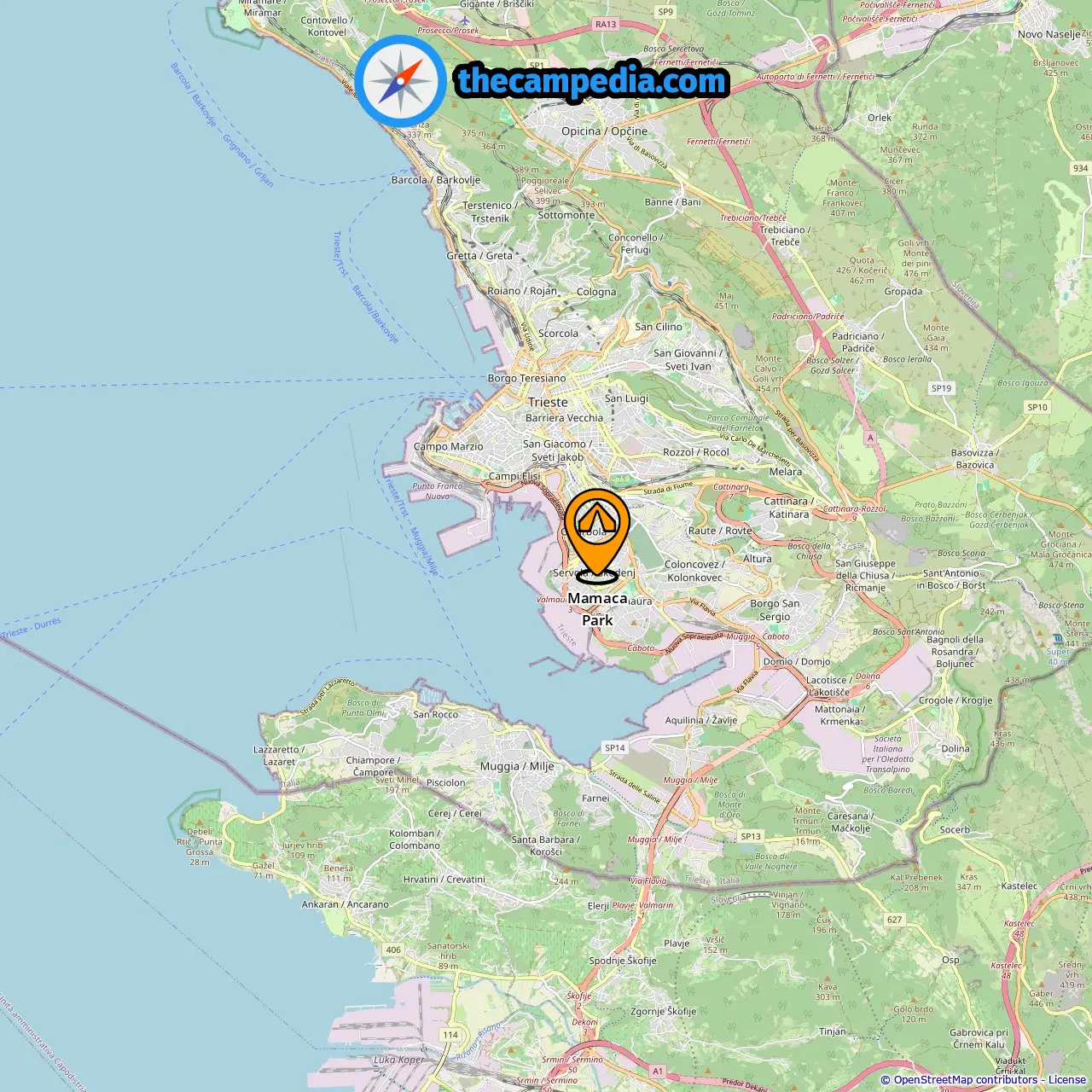 Distância do acampamento para Trieste: 3.31 mi