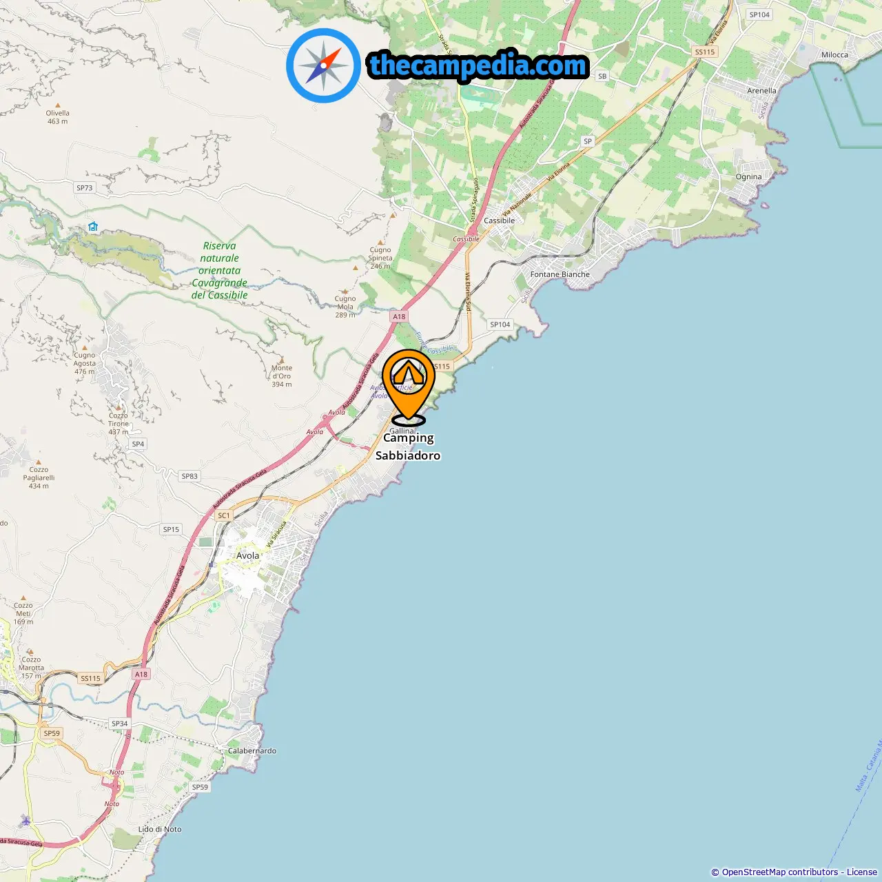Acampamentos em Fontane Bianche (5.86 mi de Avola)