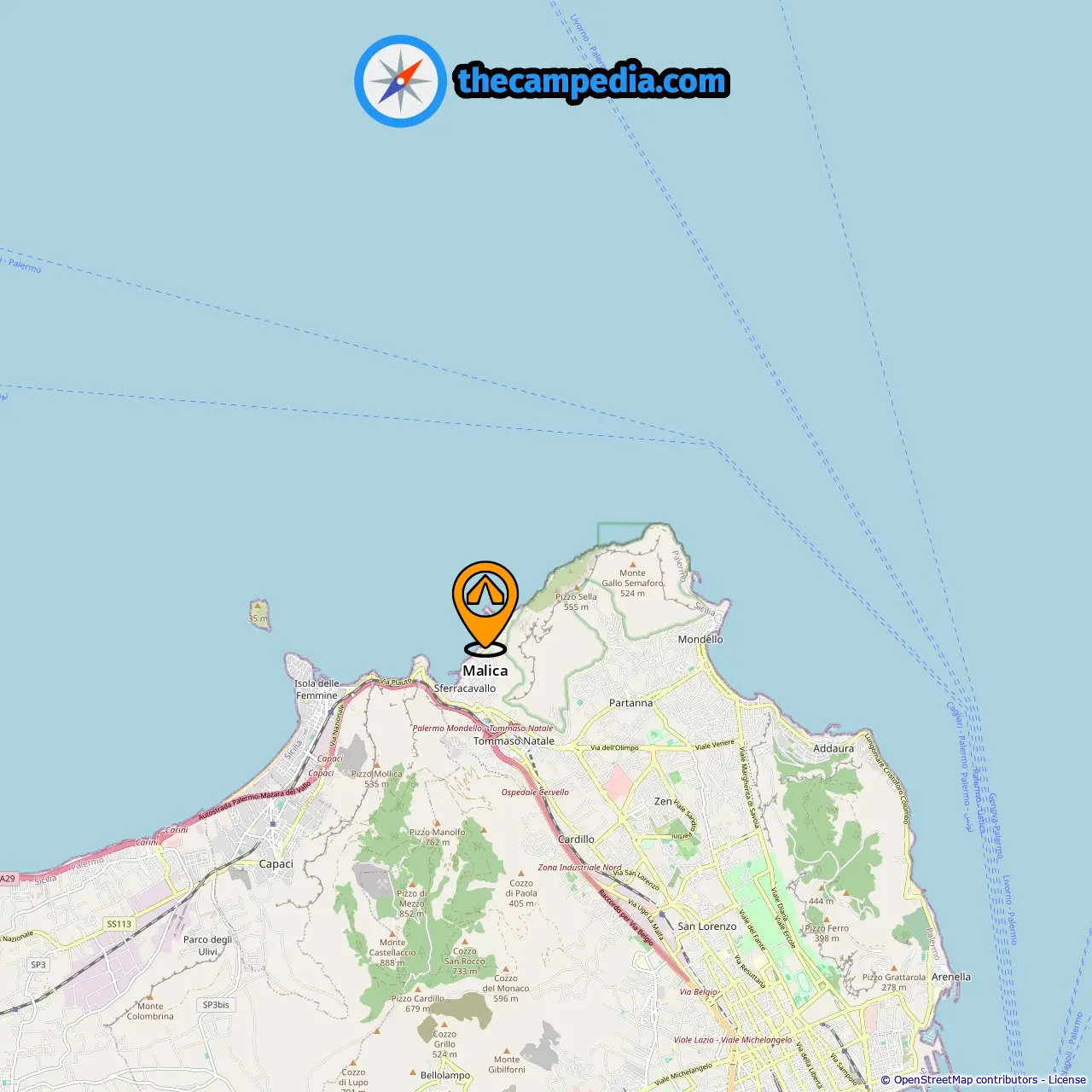 Distância do acampamento para Isola Delle Femmine: 2.97 mi