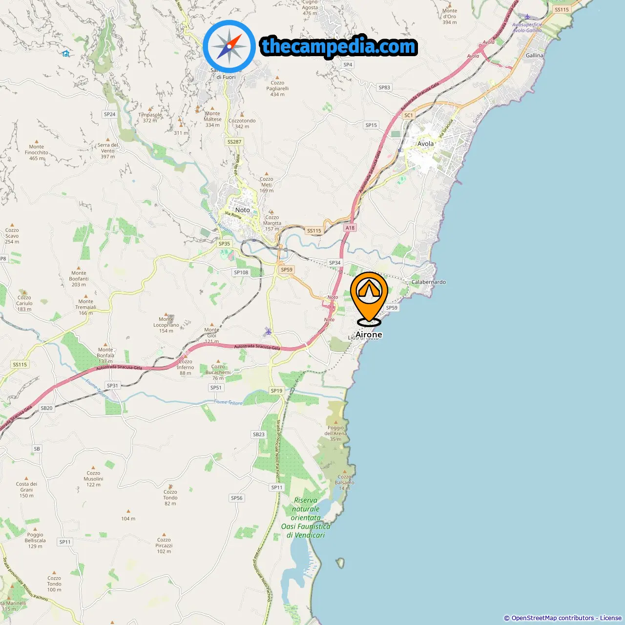 Distância do acampamento para Lido Di Noto: 0.02 mi