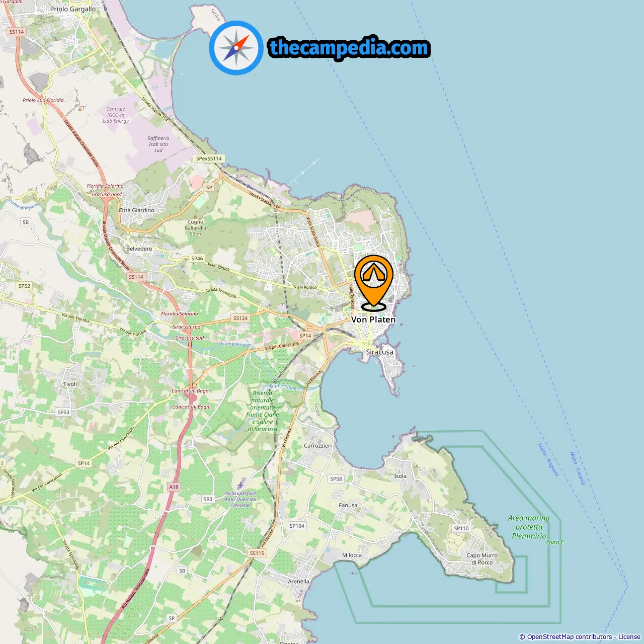 Distância do acampamento para Siracusa: 0.14 mi