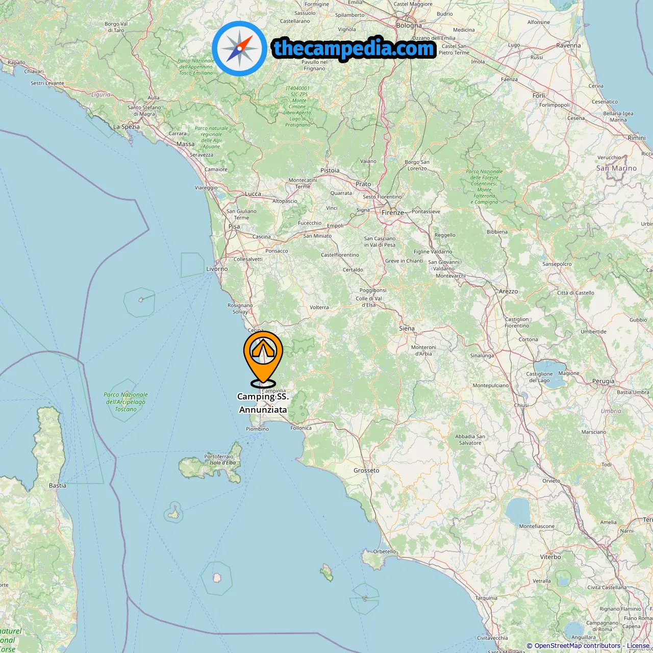 Acampamentos em Fiorentina (12.8 mi de San Vincenzo)