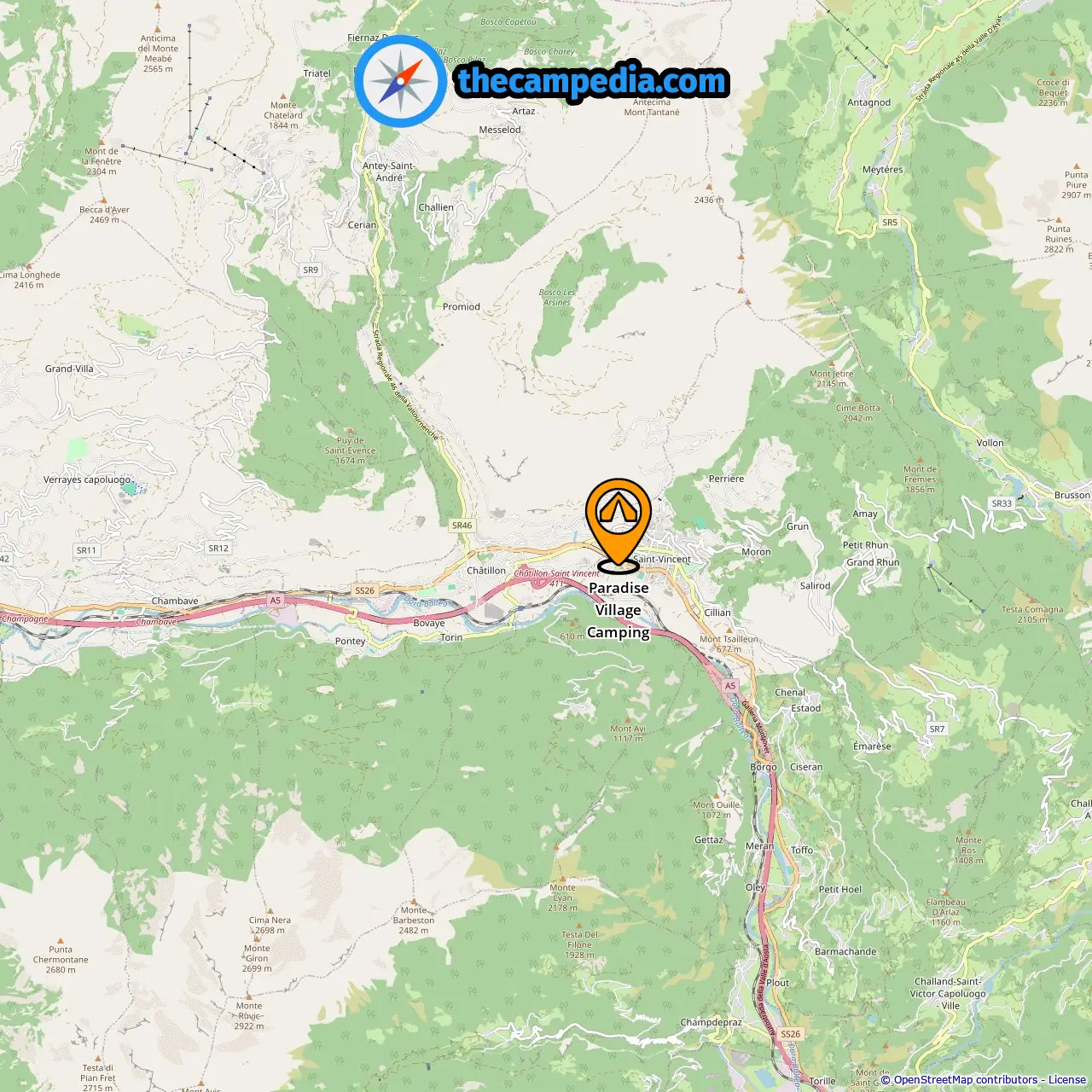 Distância do acampamento para Saint-Vincent: 0.49 mi