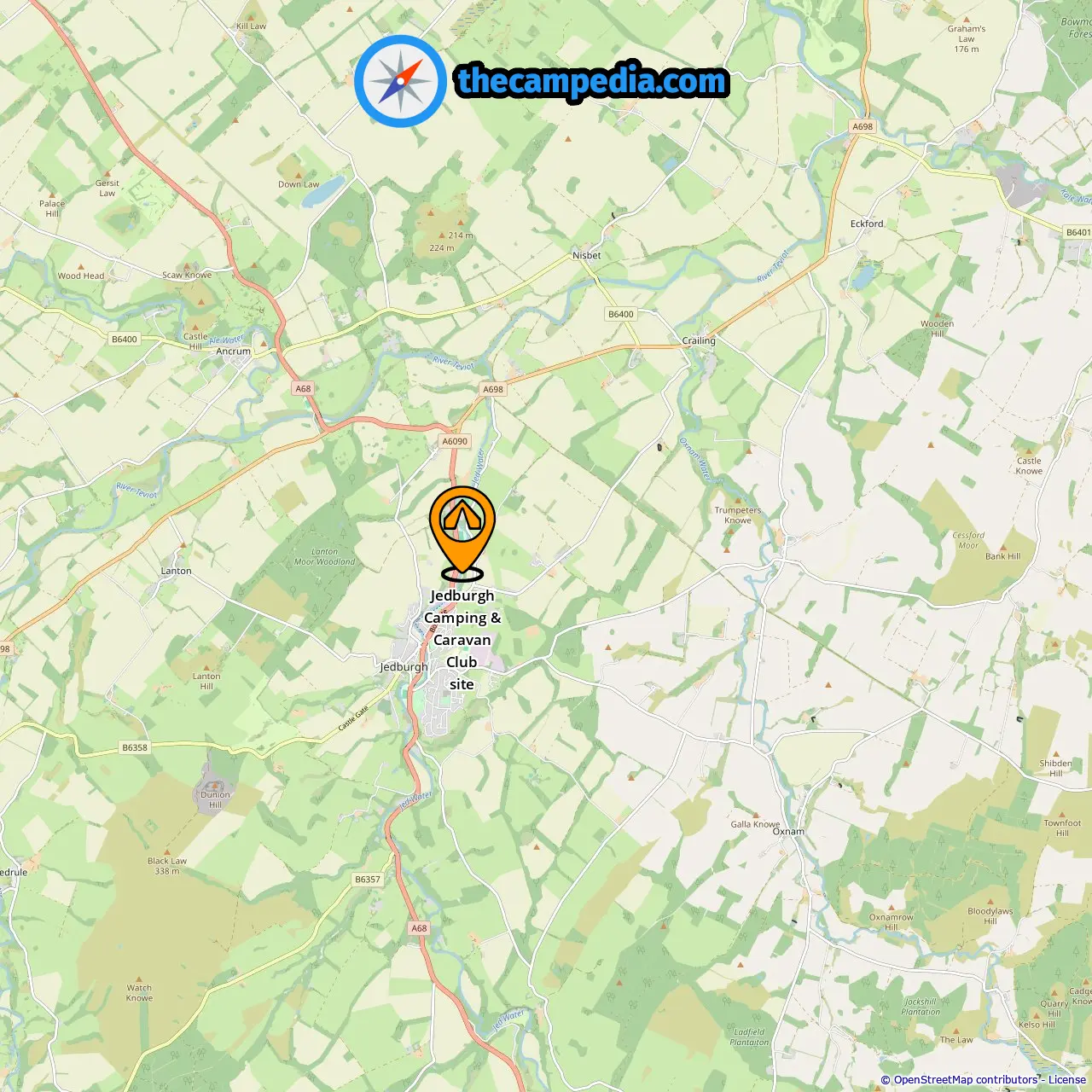 Localização de Jedburgh Camping & Caravan Club site