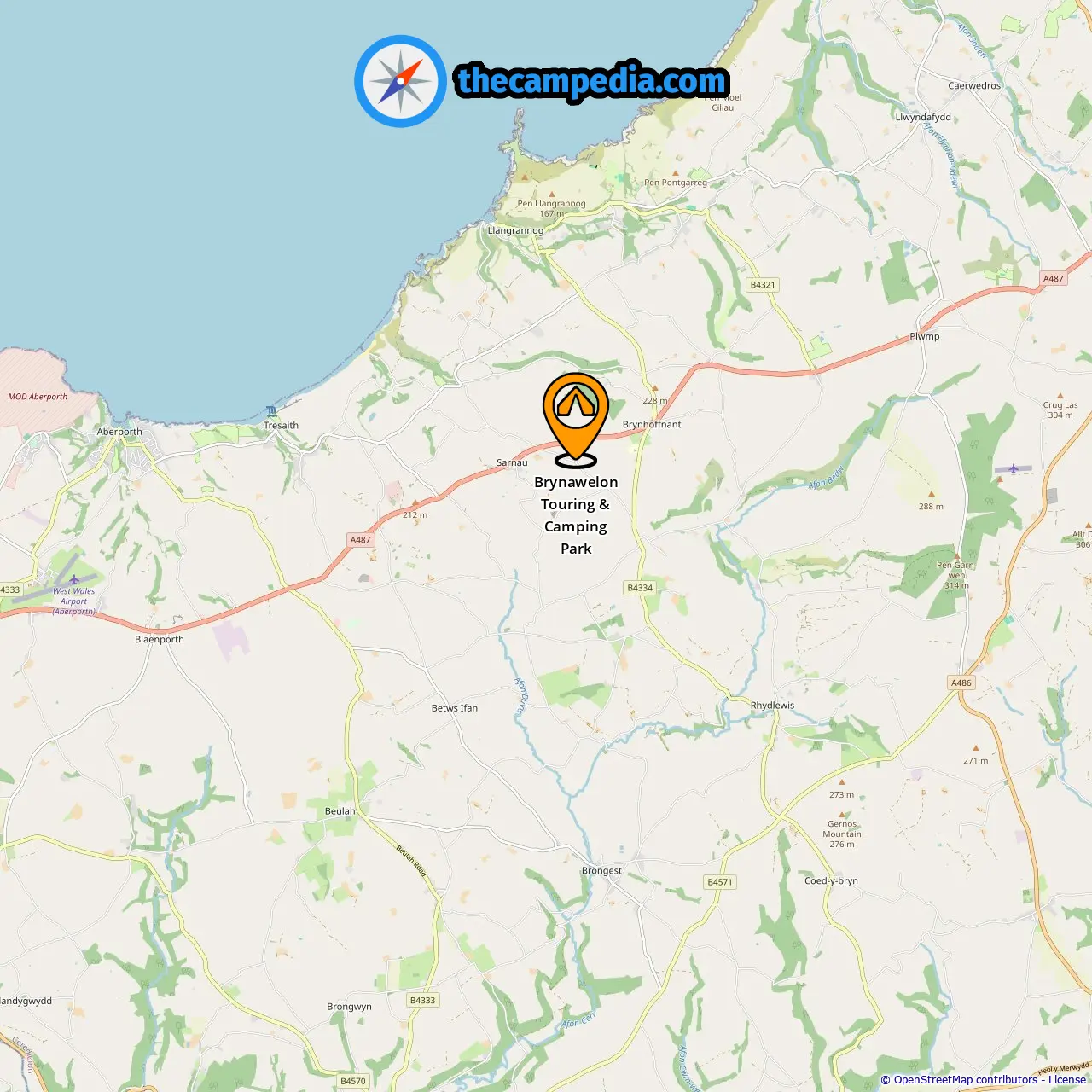 Localização de Brynawelon Touring & Camping Park